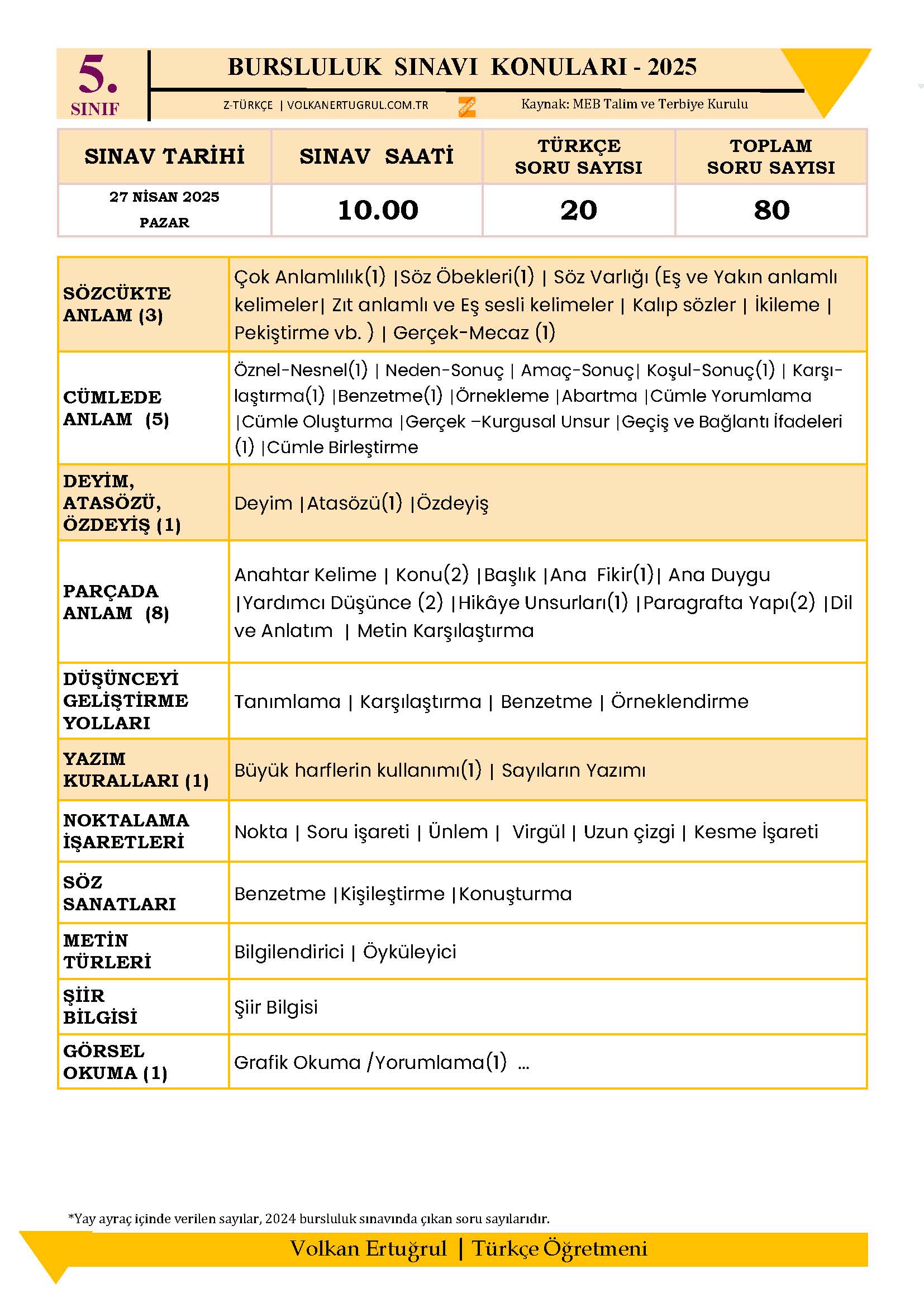 2025 BURSLULUK SINAVI KAZANIMLARI