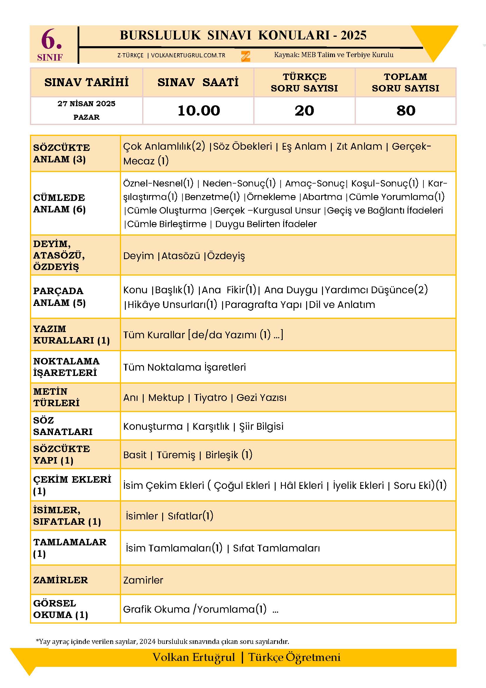 2025 BURSLULUK SINAVI KAZANIMLARI
