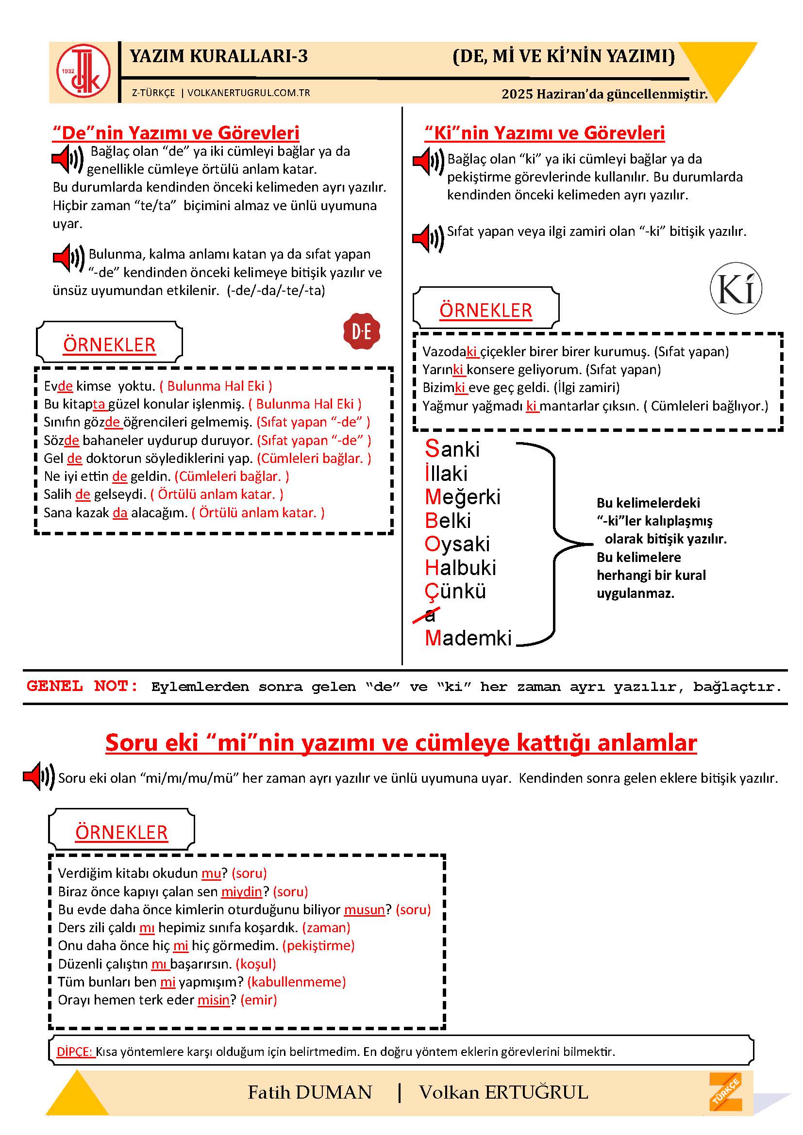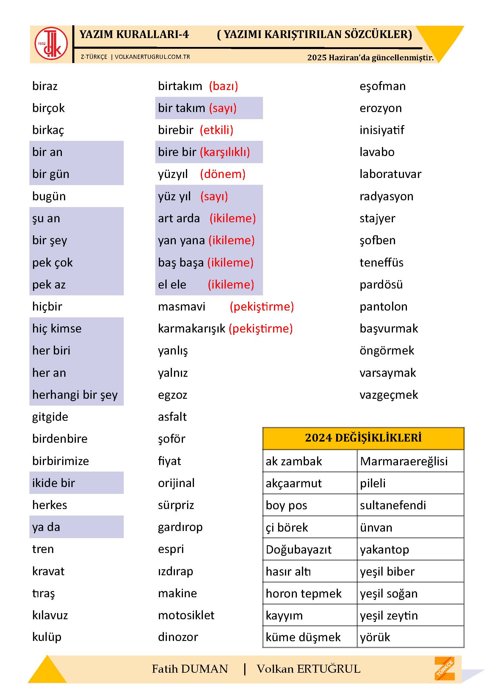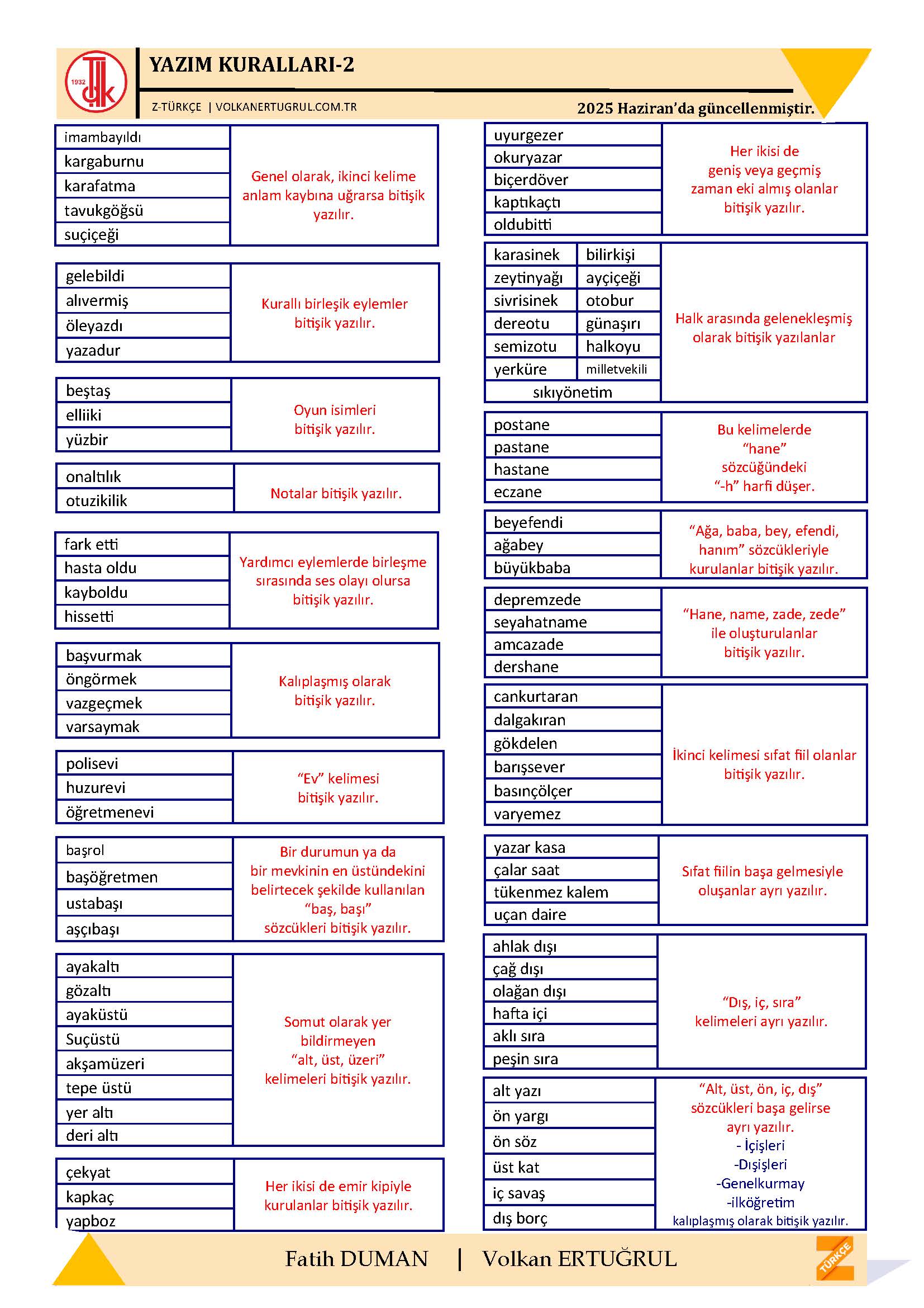 Merhaba güncellenme tarihi de belki eklenbilir. Yazım kuralları sıklıkla değişmiyor olsada.Emeklerinize teşekkürler.